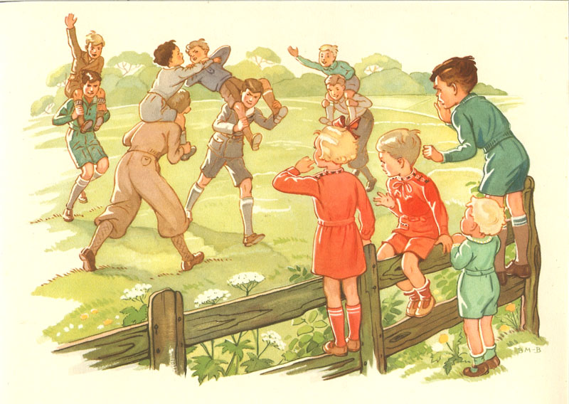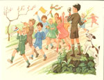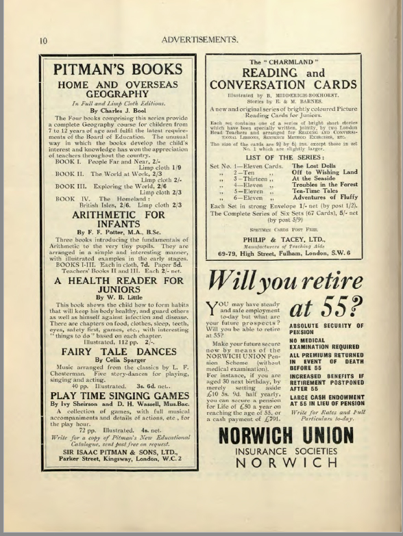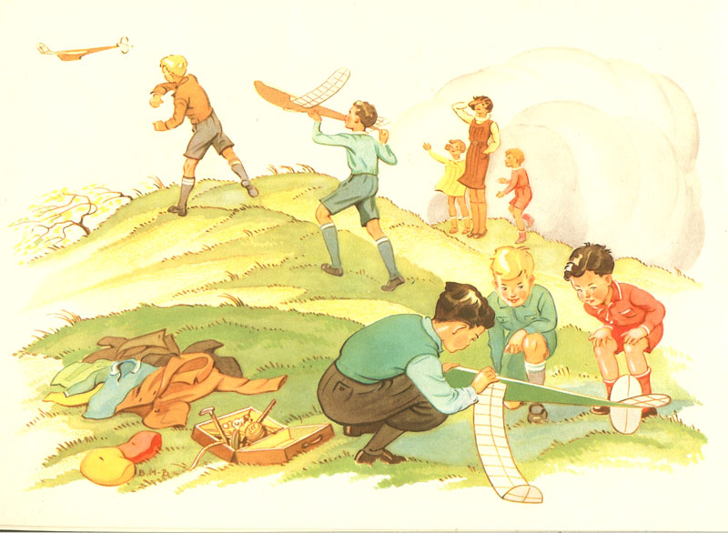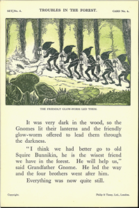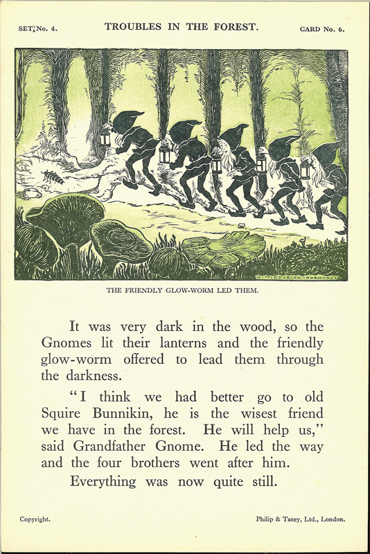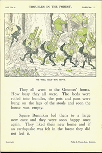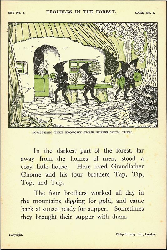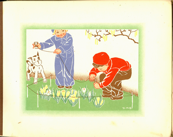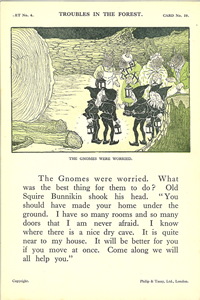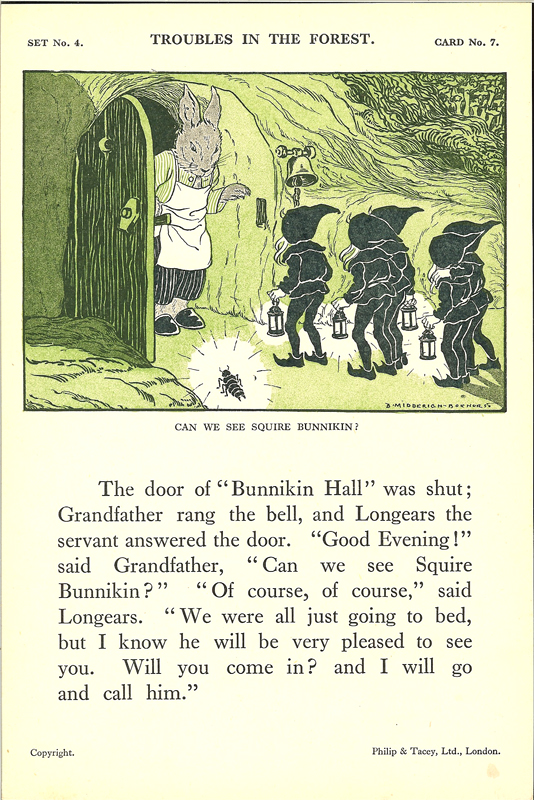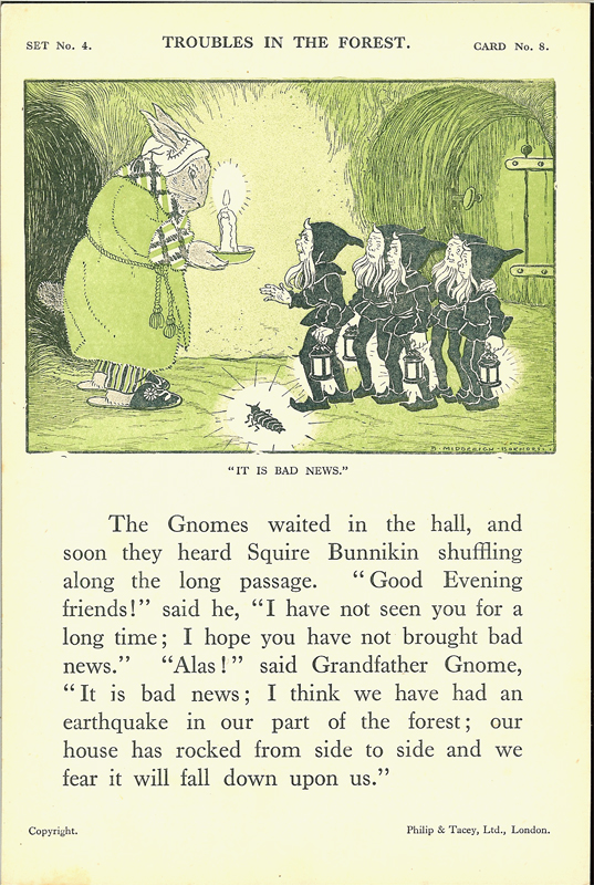 The Charmland Series Reading & Conversation Cards Een serie van zes enveloppen met losse leeskaarten met illustraties van B.Midderigh-Bokhorst Het zijn bewerkingen van de boekjes Voor School en Huis met versjes van Anna Sutorius, uitgegeven vanaf ca 1912. Uit het blad Child Life uit 1935 zie hieronder staat een uitvoerige advertentie van de uitgaven. In ieder geval is Troubles in de Forest een bewerking van Onrust in 't Bosch Hoogstwaarschijnlijk ziet het geheel er als volgt uit: