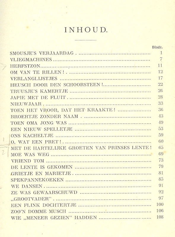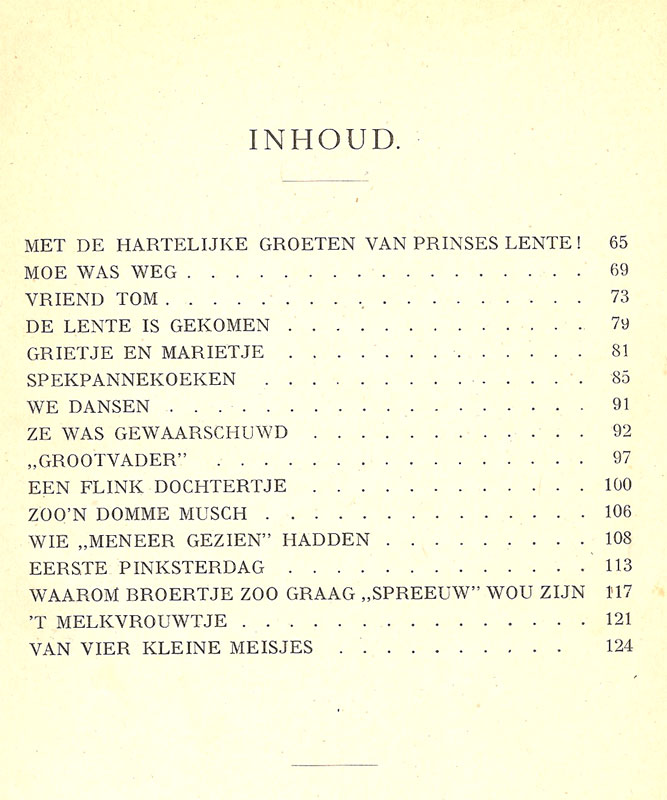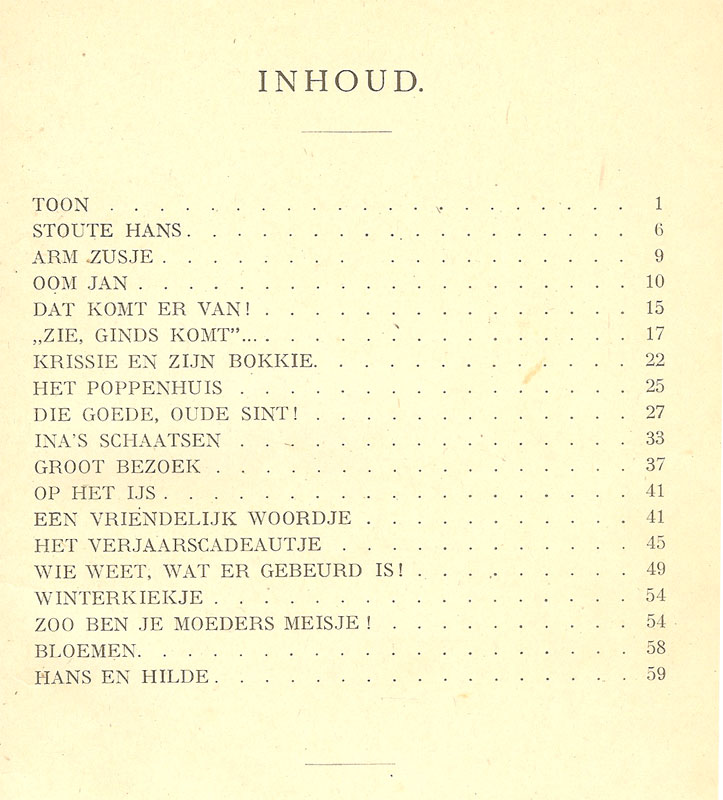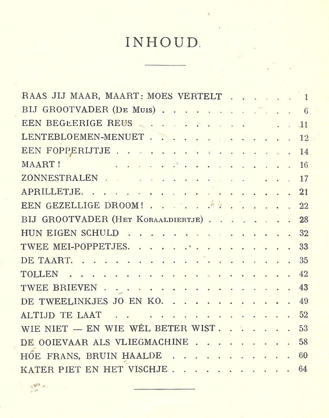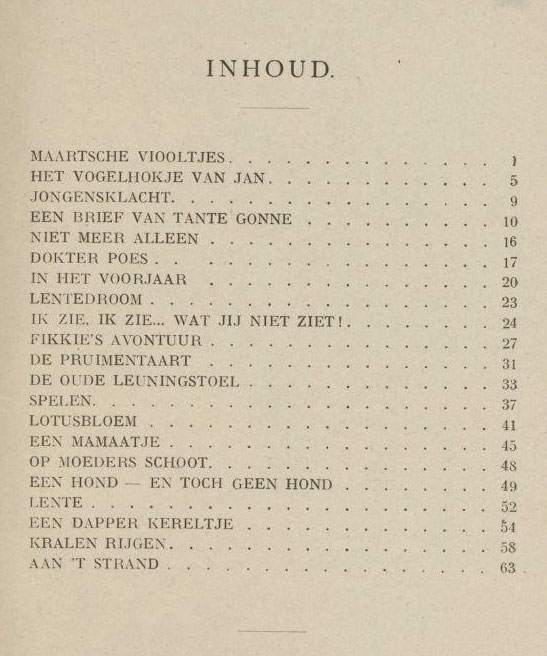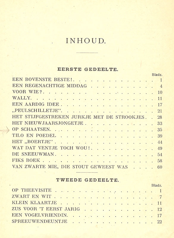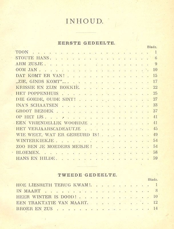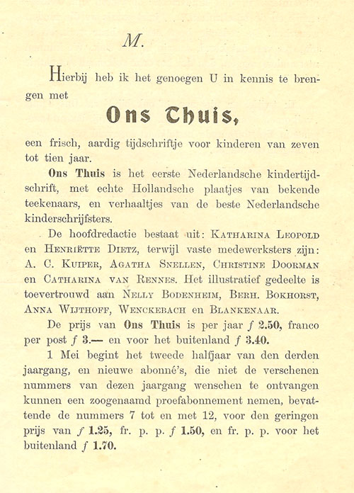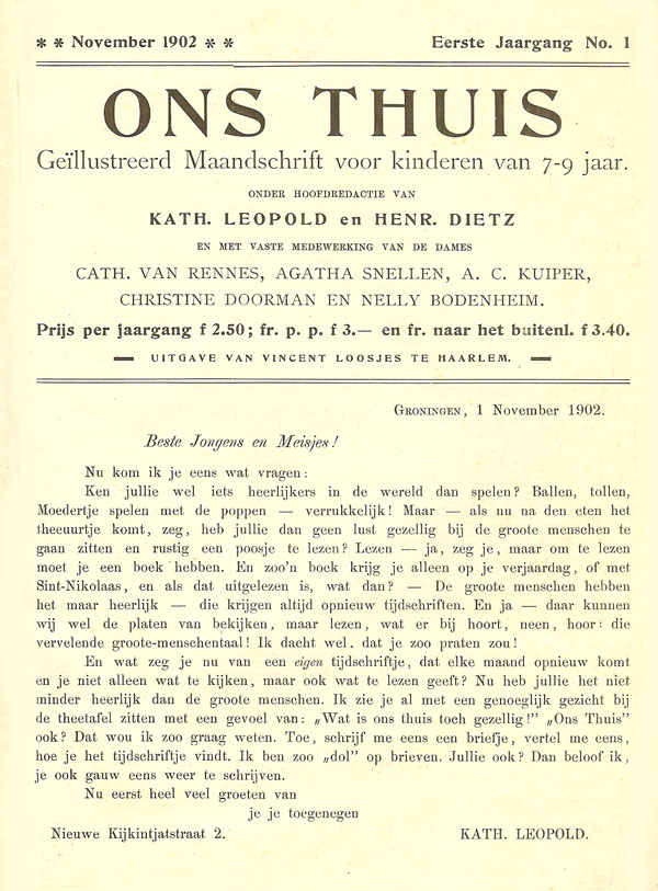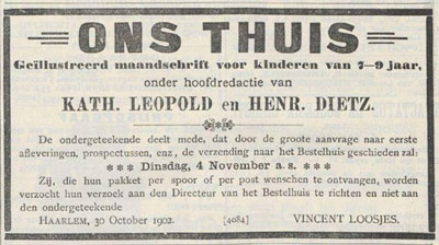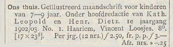 Geïllustreerd Maandschrift voor kinderen van 7-9 jaar onder hoofdredactie van Katharina Leopold (1846-1914) en Henriëtte Dietz (1857-1939). Het tijdschrift werd aanvankelijk vanaf 1902-1903 door Vincent Loosjes te Haarlem uitgegeven, vanaf november 1908 tot 1940 door Uitgever L.J. Veen te Amsterdam.
