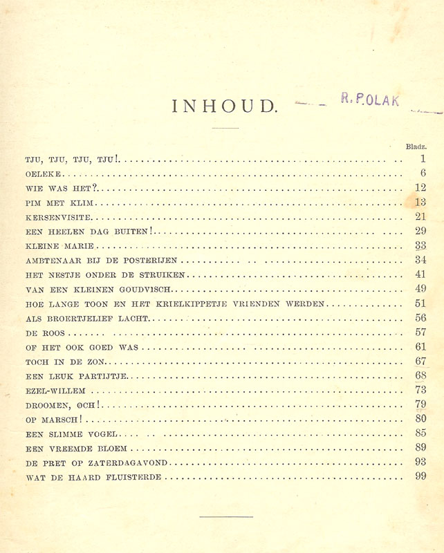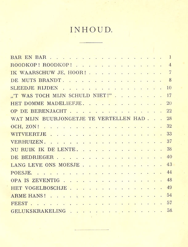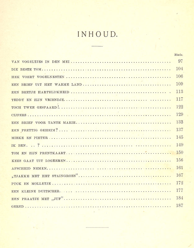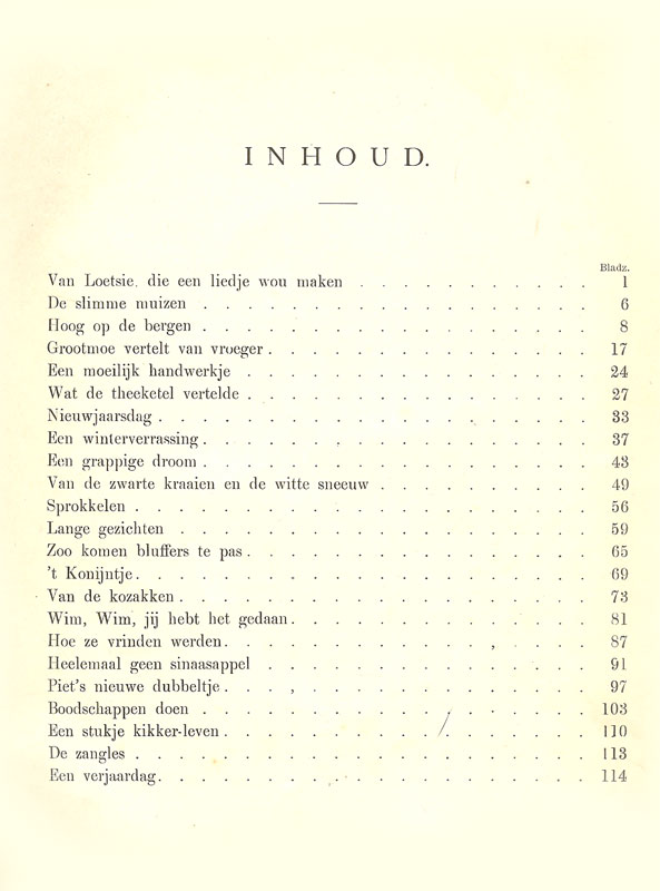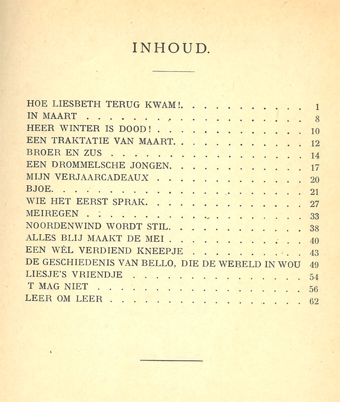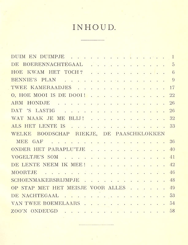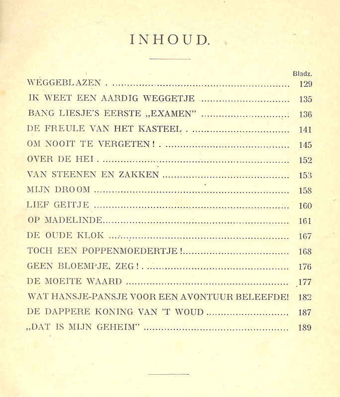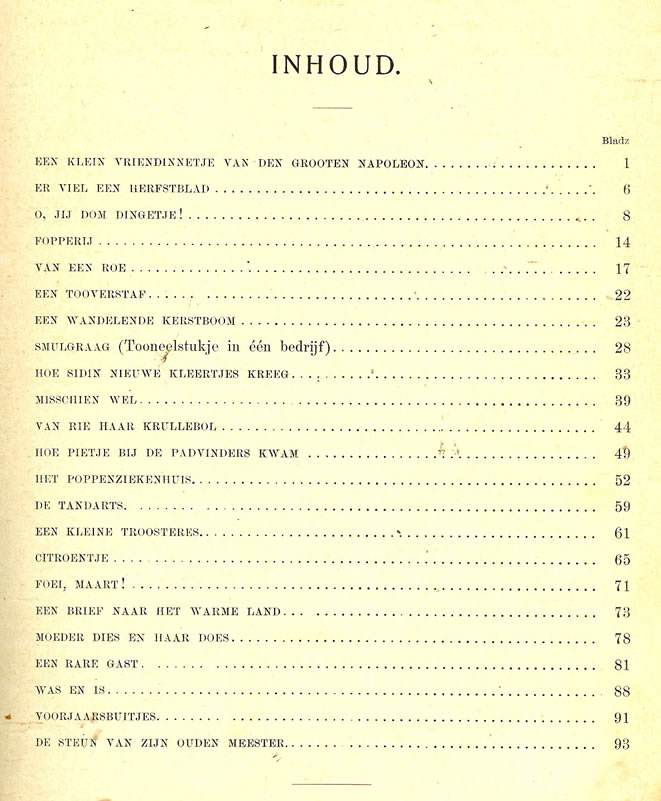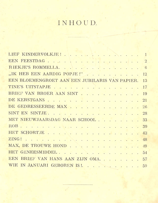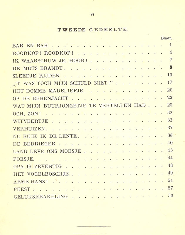 Geïllustreerd Maandschrift voor kinderen van 7-9 jaar onder hoofdredactie van Katharina Leopold (1846-1914) en Henriëtte Dietz (1857-1939). Het tijdschrift werd aanvankelijk vanaf 1902-1903 door Vincent Loosjes te Haarlem uitgegeven, vanaf november 1908 tot 1940 door Uitgever L.J. Veen te Amsterdam.