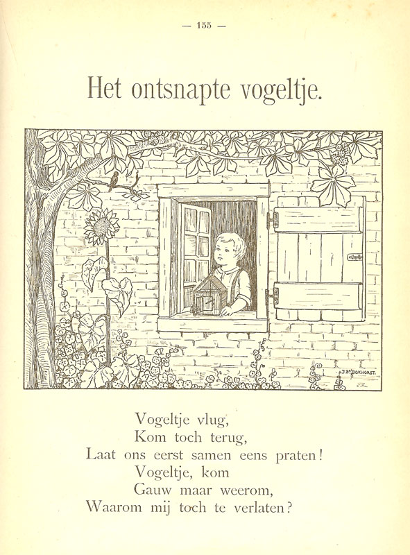 De originele tekening Ons thuis 9e jaargang 1910-1911 dl 2 pag 31 bij het verhaal Marie Leopold: Wims Sijsje bevindt zich beschreven in het Rijksmuseum (aanklikken), schenking van L.J.Veen in 1970. Los deel: Een eigen huisje