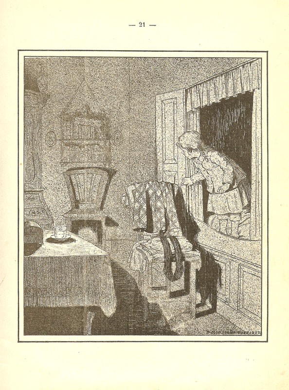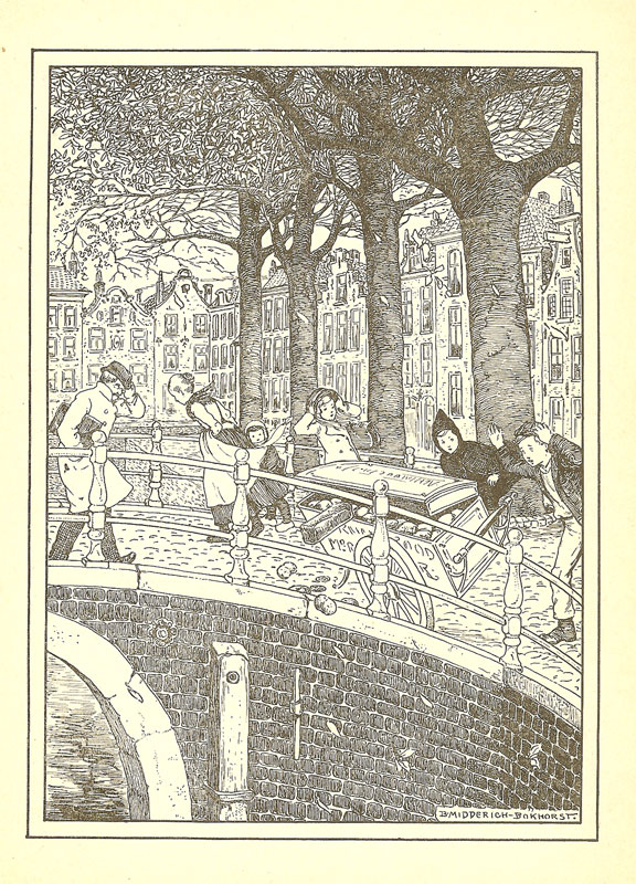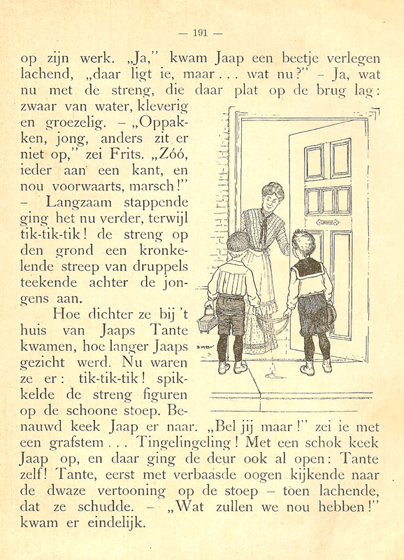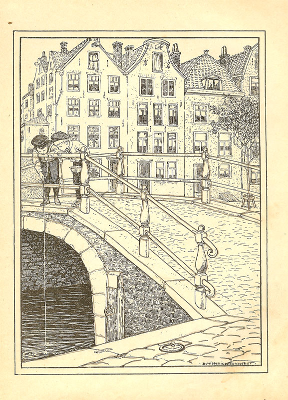 De originele tekening Ons Thuis 9e jaargang 1910-1911 dl 2 pag 81 bij het verhaal van Henr. Dietz: Dat had je niet gedacht bevindt zich beschreven in het Rijksmuseum (aanklikken), schenking van L.J.Veen in 1970. Los deel: Een eigen huisje; Ook in Stamperius; De reis van Schipper Bontekoe pag 71.
