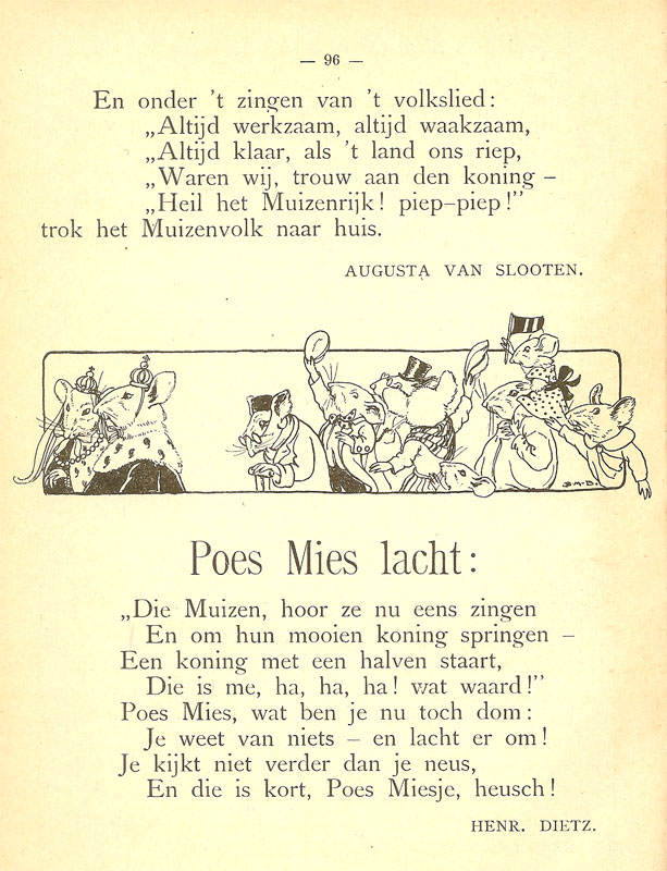 De originele tekening Ons Thuis 9e jaargang 1910-1911 dl 2 pag 93 bij het verhaal van Augusta van Slooten: Langstaart, de Muizenkoning bevindt zich beschreven in het Rijksmuseum (aanklikken), schenking van L.J.Veen in 1970. Los deel: Een eigen huisje