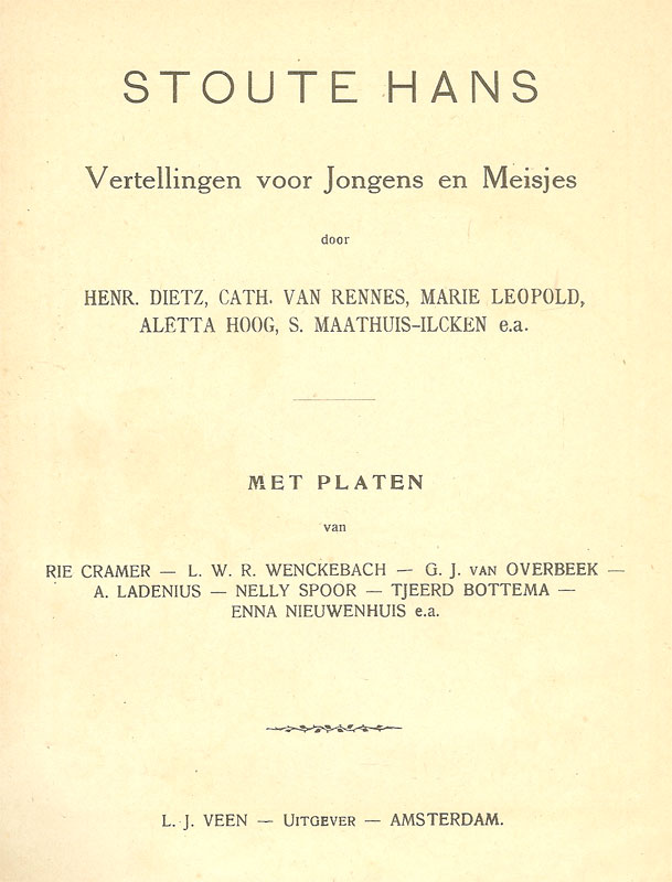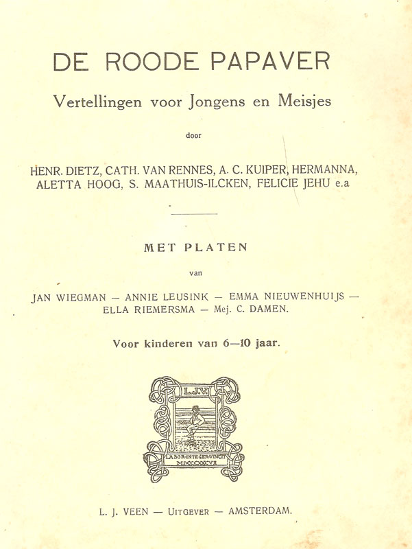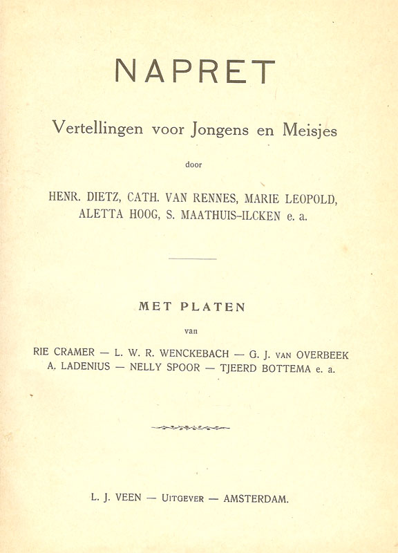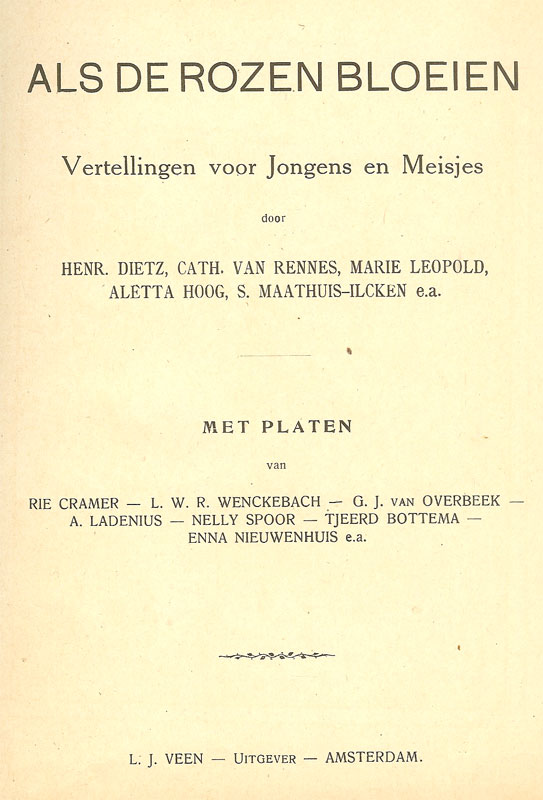 De illustraties zijn van o.a. Rie Cramer (1887-1977), Jan Wiegman (1884-1963), Annie Leusink, Ella Riemersma, Netty Heyligers (1897-1989), B.Midderigh Bokhorst (1880-1972), Cornelia (Nelly) Spoor (1885-1950) en Gijsbertus Johannes van Overbeek (1882-1947) e.a.
