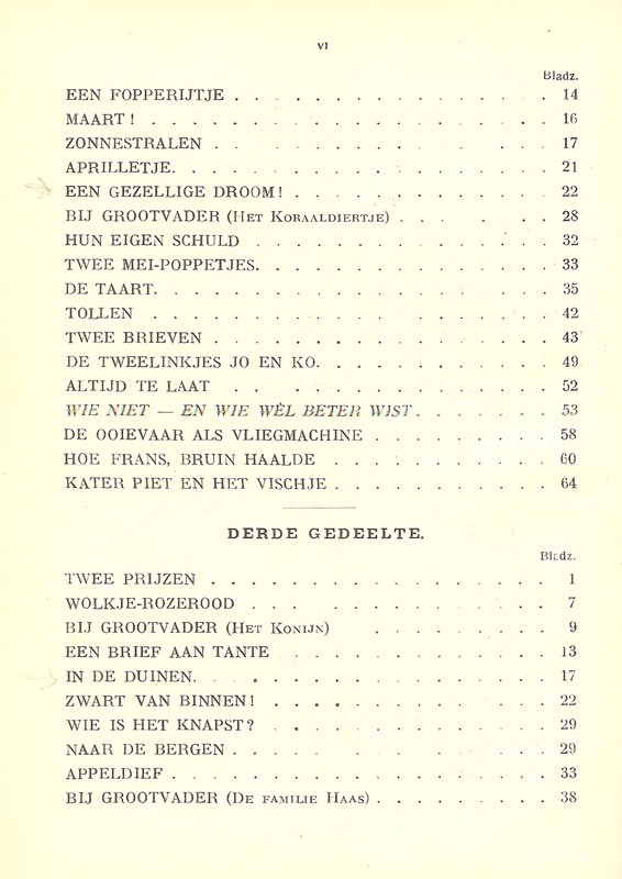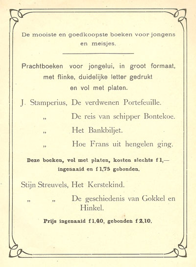 Een aantal verhalen, inclusief de tekeningen van B.Midderigh-Bokhorst, (aanvankelijk nog Berh. Bokhorst) verschijnen ongeveer gelijktijdig in de eveneens bij L.J. Veen uitgegeven bundels bijeengebracht door J.Stamperius getiteld: De reis van Schipper Bontekoe (1912), De verdwenen portefeuille (1913), Het bankbiljet (1914) en Hoe Frans uit Hengelen ging (1915)