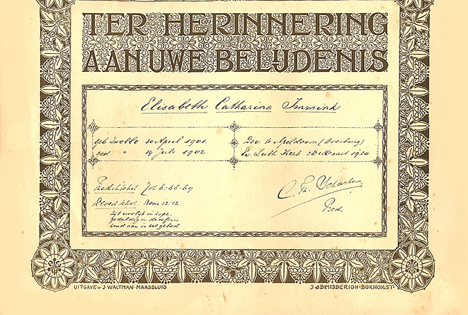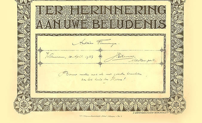 Ter herinnering aan het derde eeuwgetij der Remonstrantsche Broederschap 1619-1919 Afmetingen 41x26