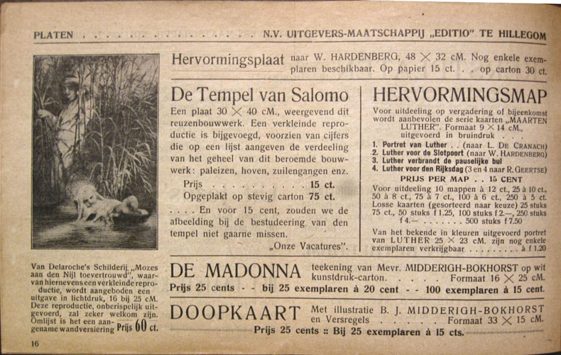 Naast het illustratreren van boeken vervaardigt B.Midderigh-Bokhorst met haar echtgenoot ook voor diverse organisaties affiches en voor instellingen en bedrijven fraai reclamemateriaal en enkele kalenders.