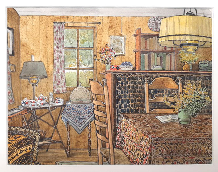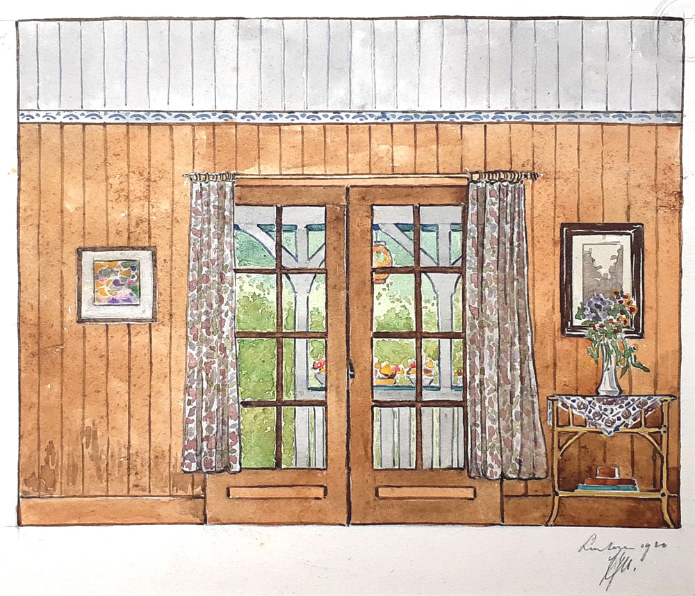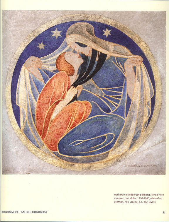 Rond 1925 vervaardigt B.Midderigh een fraaie olieverf op etherniet (Zie De familie Bokhorst) en De Vrouw en Haar Huis, jaargang 20 1925-1926 pagina 77 |
