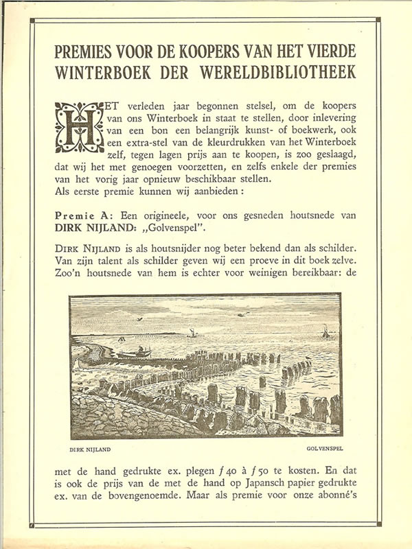 De houtsnede ''Golvenspel'' van Dirk Nijland heeft verbazingwekkende overeenkomsten met 'Hollandsche riviermonding'' (Hoek van Holland) aanklikken ![]() |