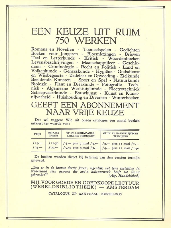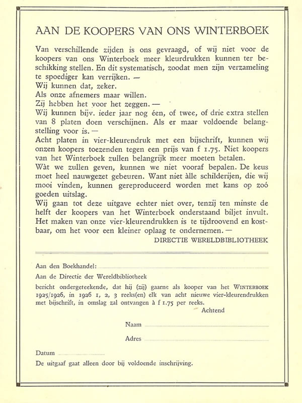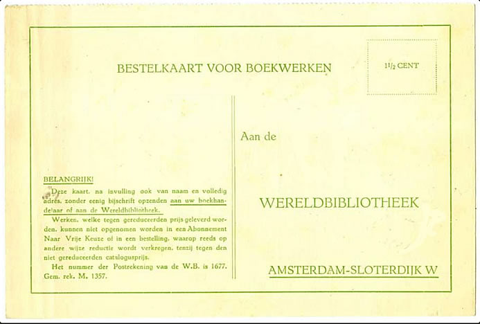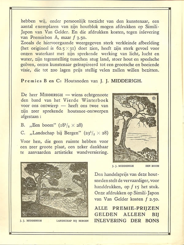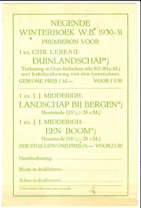 Bestelkaart uit 1930 voor de houtsnedes van J.J. Midderigh |