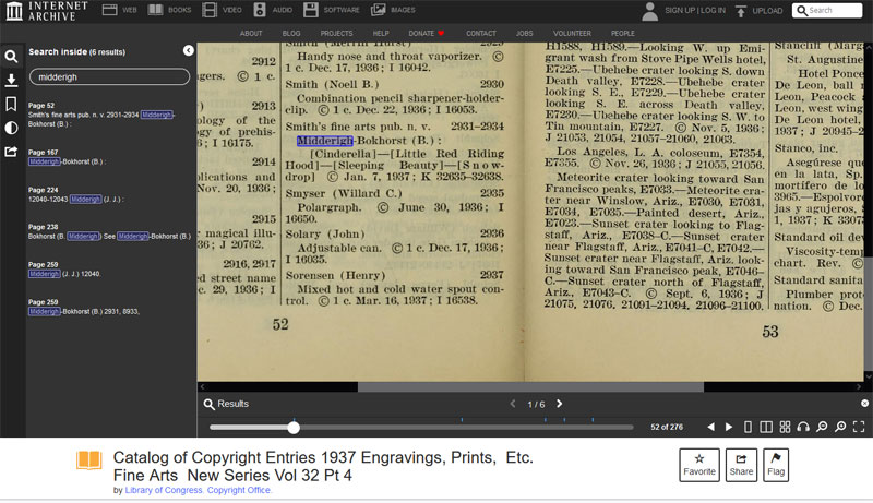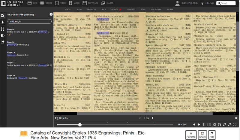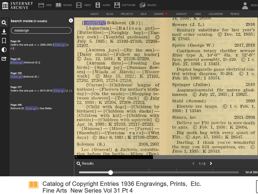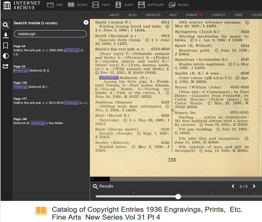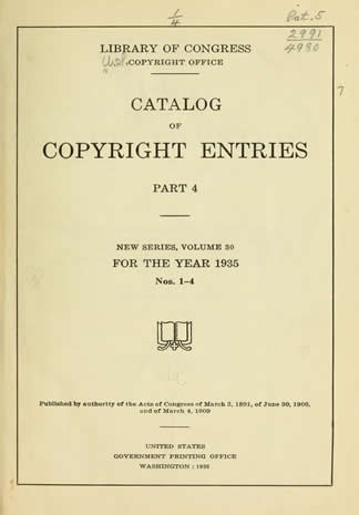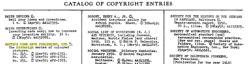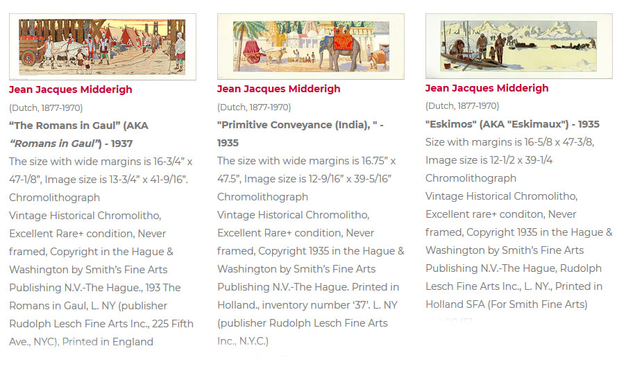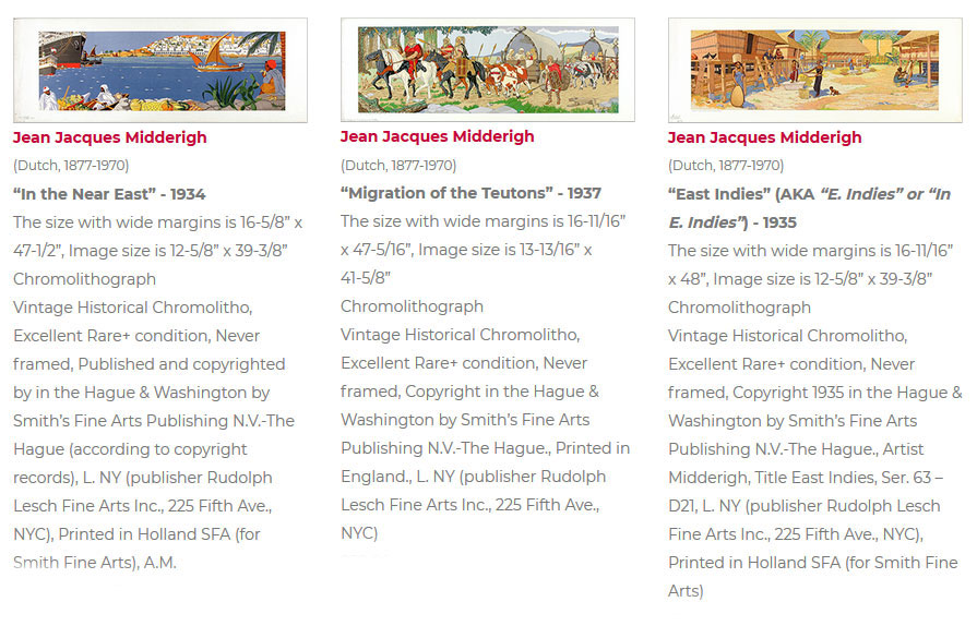 De bovenstaande en onderstaande serie worden vermeld in de Catalog of Copyright Entries 1935 Engravings Prints Etc. Fine Arts New Series Vol 30 Pt 4" |
