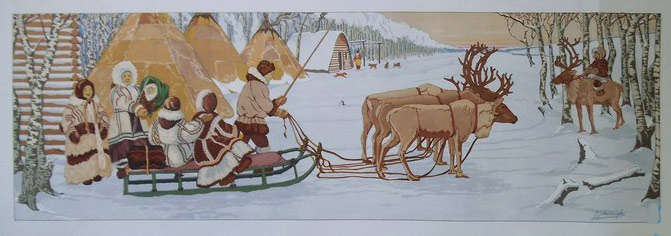 Slede en rendieren, Samojeden, Siberië, Noord-Azië - Laplanders at home © 15 september 1935 |