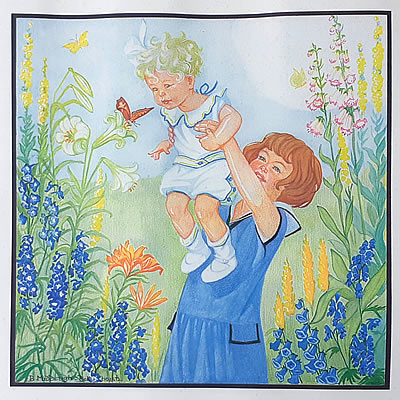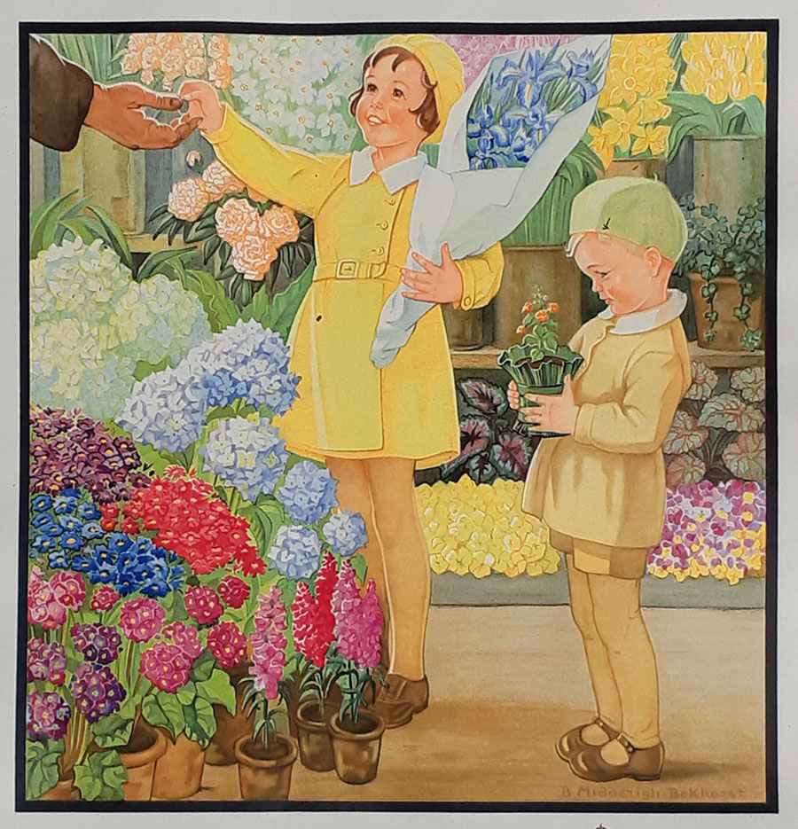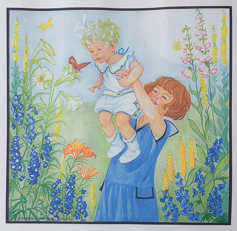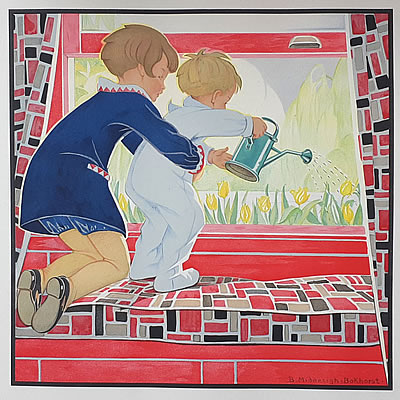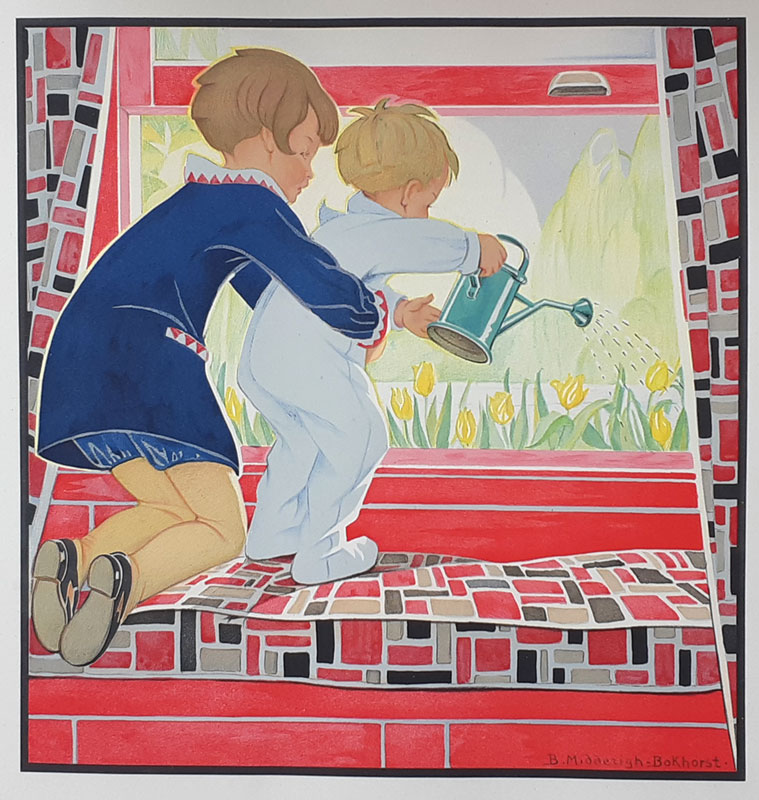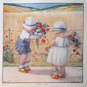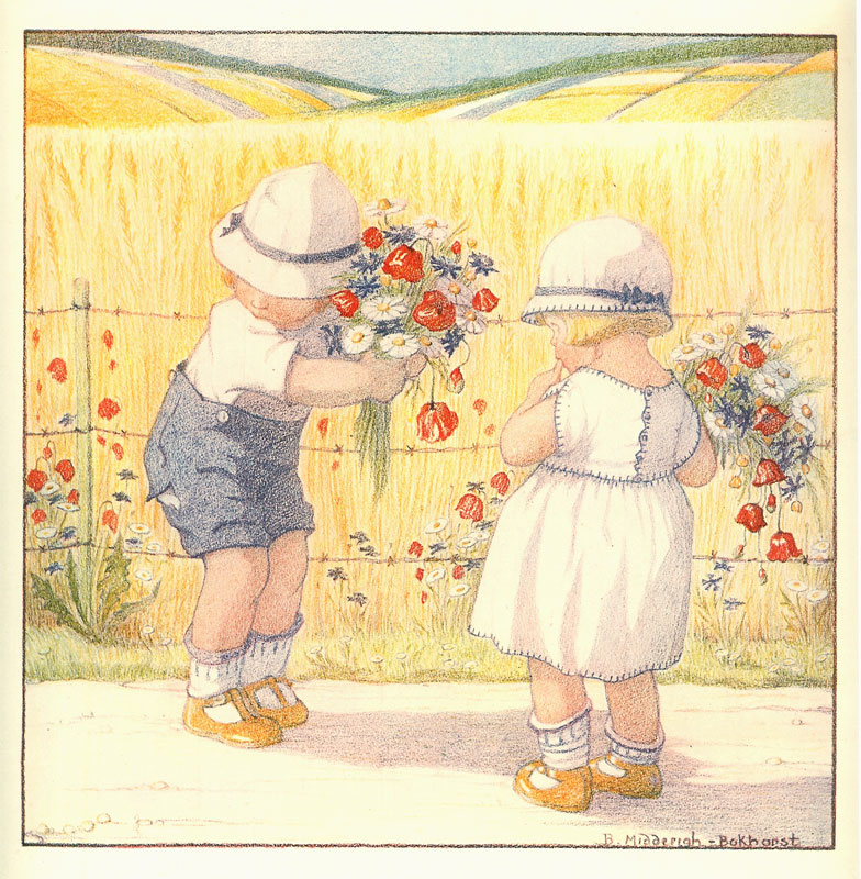 Jeugd I - 't Gescheurde broekje - Summer flowers © 15 mei 1922 NB Er is nog een gescheurd broekje (Zonnedag?), maar in De vrouw en haar huis wordt over zonlicht en zomerweelde gesproken |