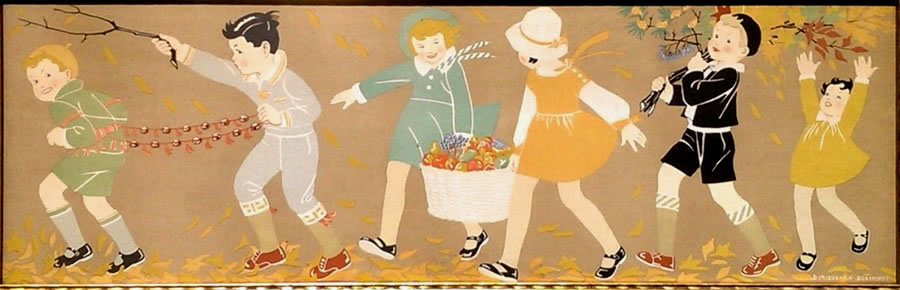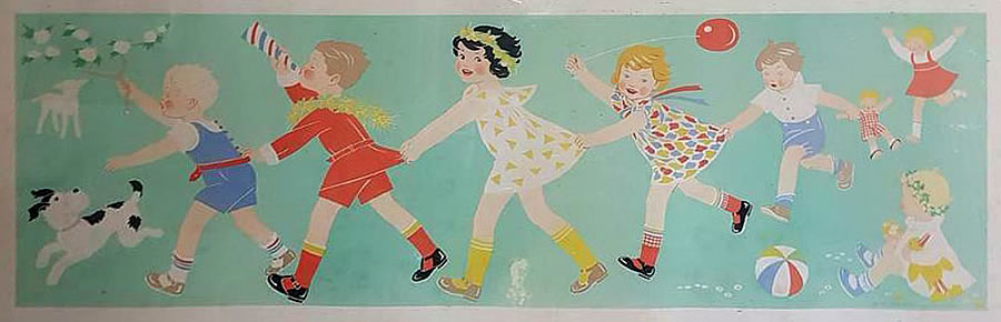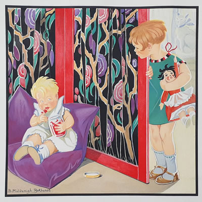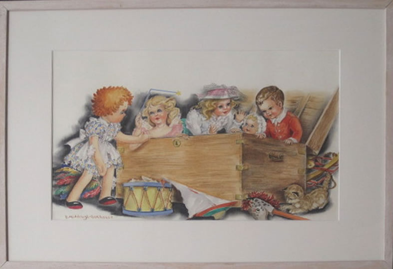 ![]() De poppenkist ca 1950 Aquarel 46 x 26 |