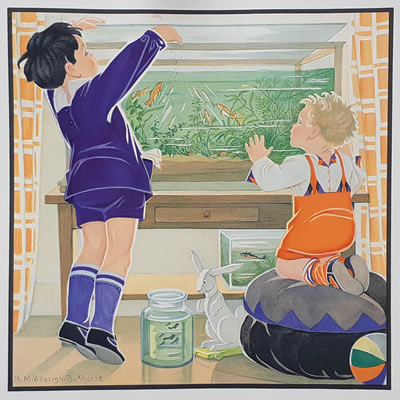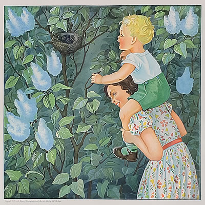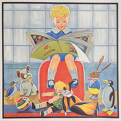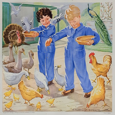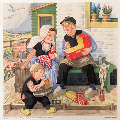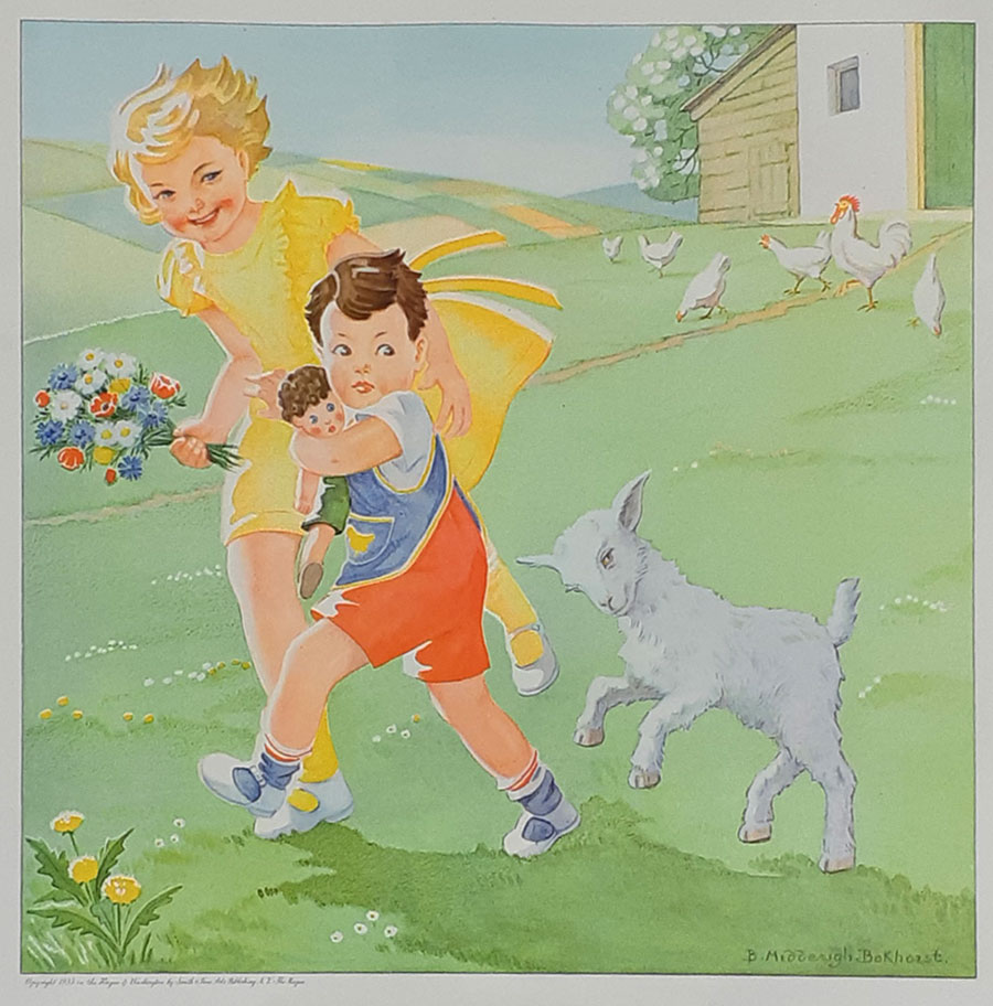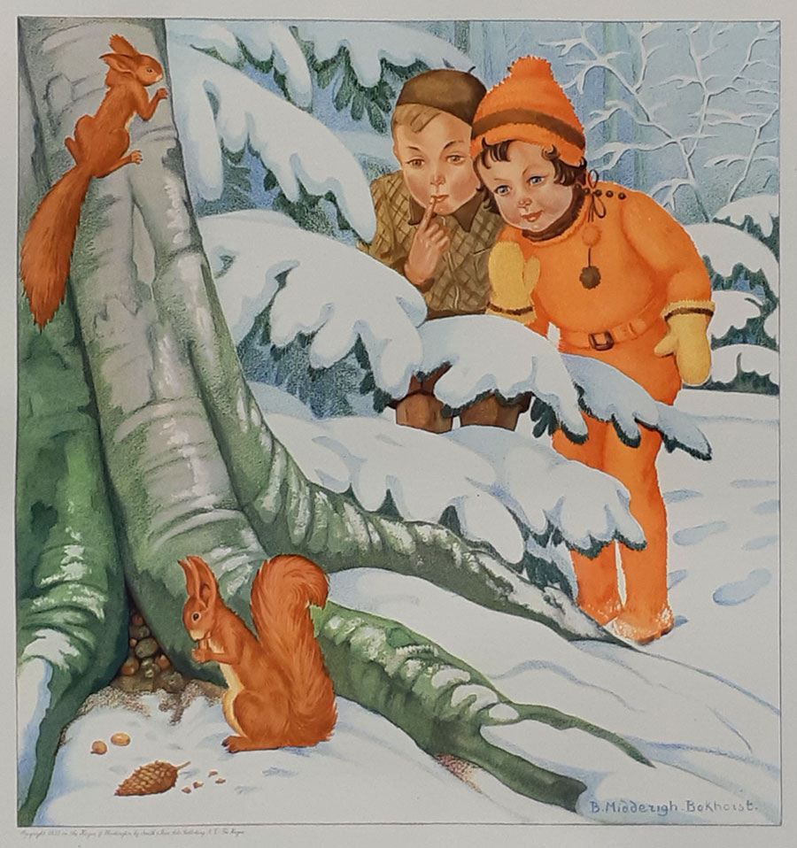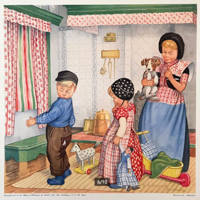 Jeugd I Afmetingen hele plaat 48x48, afbeelding 32x32 NB: Of de Nederlandse titels van de Jeugd-platen origineel zijn is (nog) niet overal duidelijk. De volgorde van de platen is die van de Collectie Luikinga De Engelse titels zijn afkomsig van de jaarlijkse Catalog of Copyright Entries - afbeelding aanklikken voor vergroting ![]() |