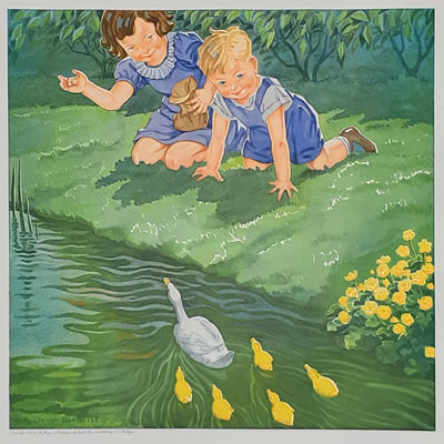 Jeugd V - Eendjes voeren - Children with ducks © 18 april 1935 |