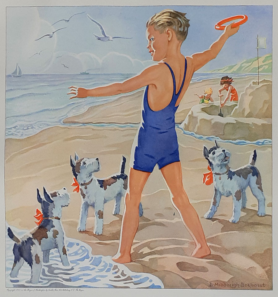 Jeugd V - Strandvreugde - Child with dogs © 18 april 1935 |