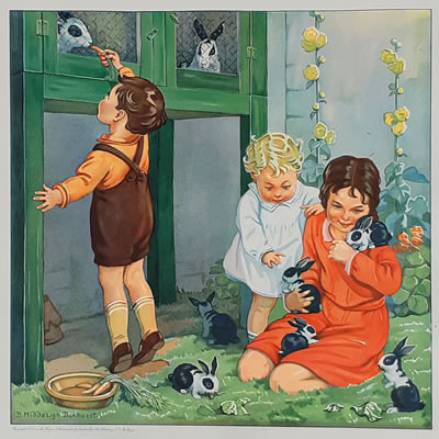 Jeugd V - Konijntjes voeren - Children with rabbits © 18 april 1935 |