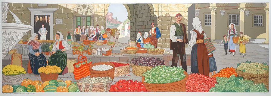 Een groentemarkt in Zuid-Slavië |