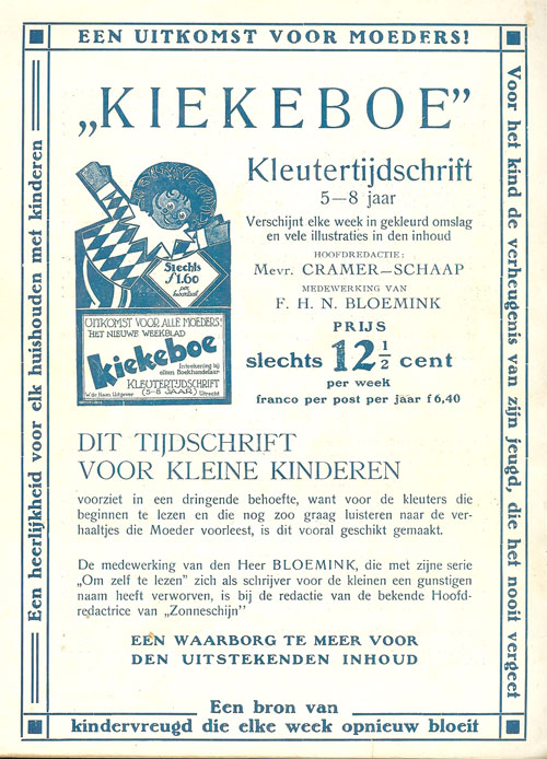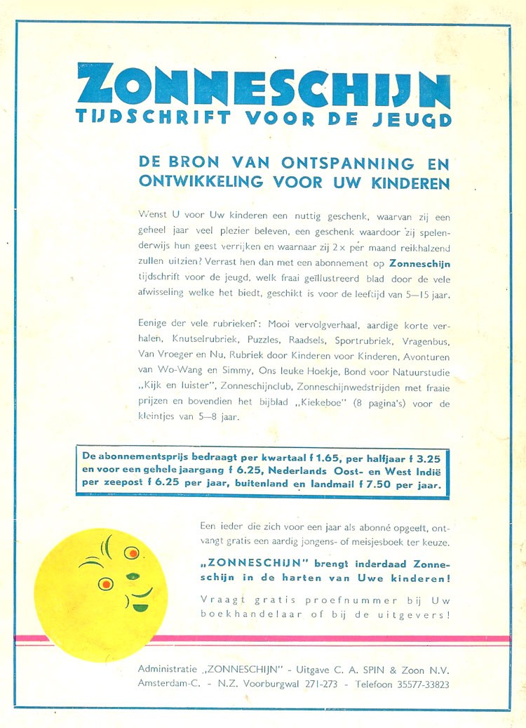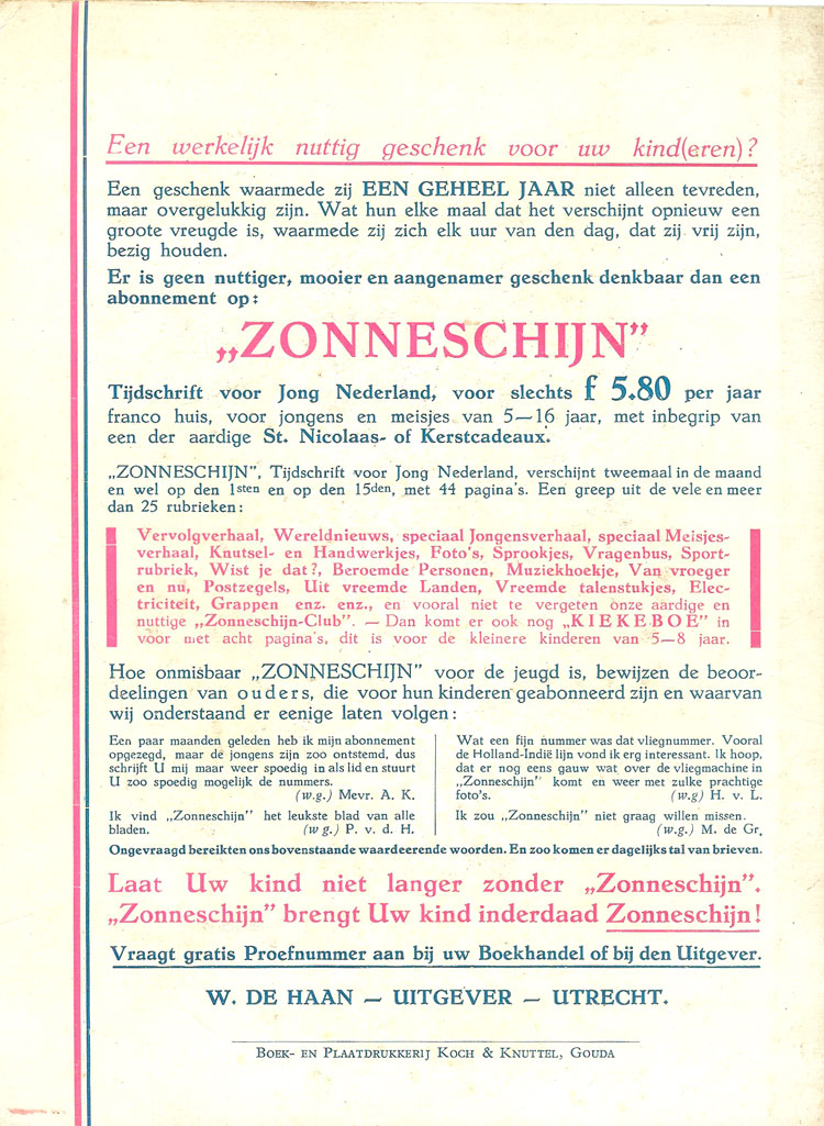 Advertentie voor Zonneschijn achterop het kerstboek 1938 ![]() |