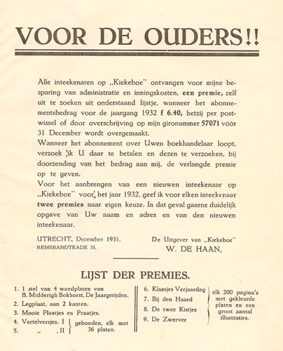 | Kerstnummer 1928 = januari 1929 kar | Kerstboek I 1929 = januari 1930 |