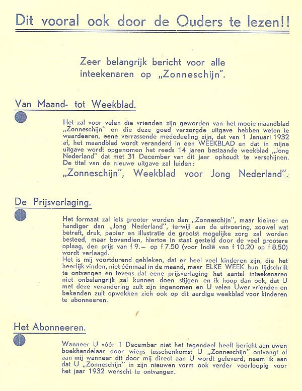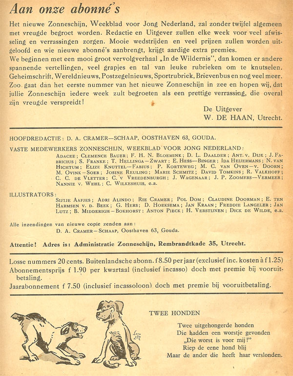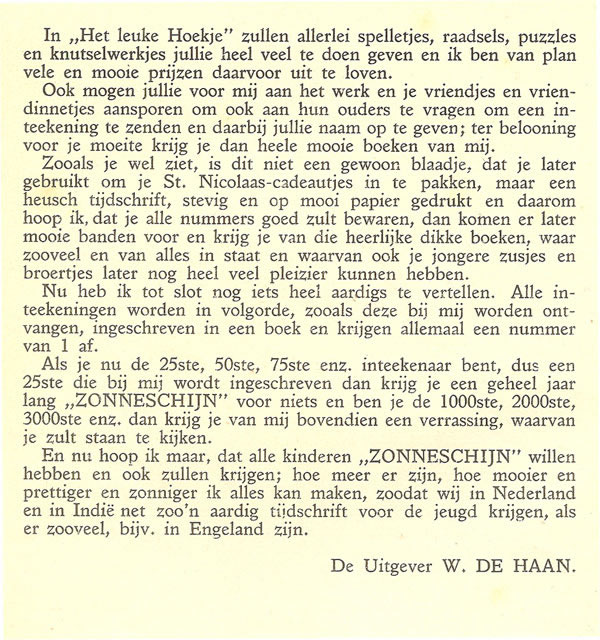 Zonneschijntjes en overige deeluitgaven met andere omslag Advertentie 5e jaargang juni 1929 ![]() ![]() |