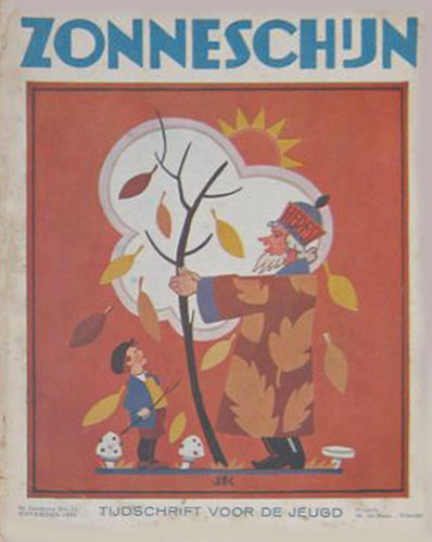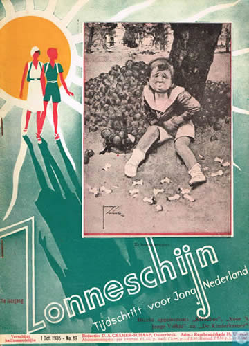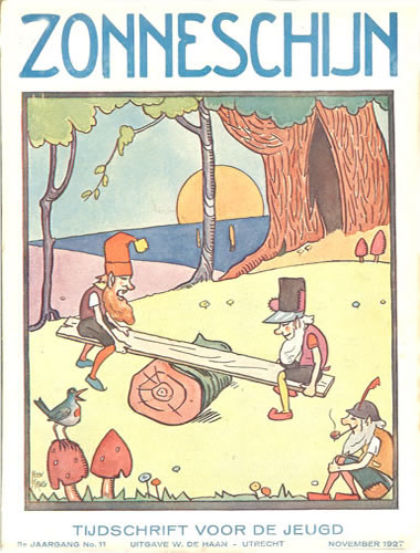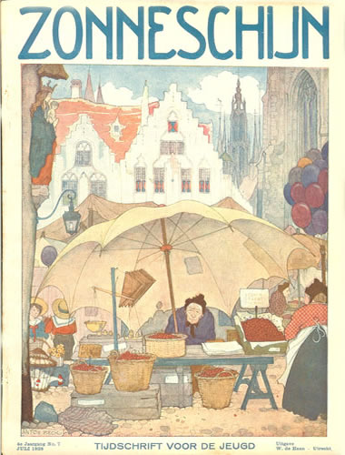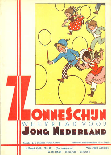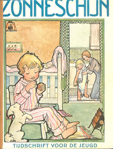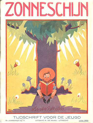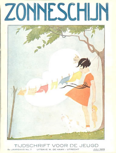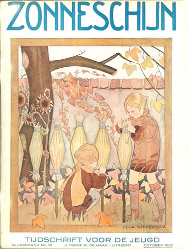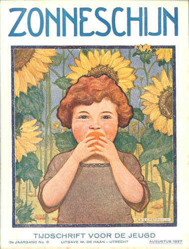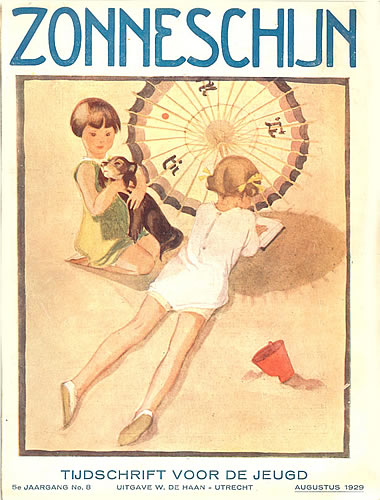 ![]() Zonneschijntjes XIX - De Twee Kistjes 5e jaargang 3e kwartaal 1929 (3nrs) - Omslag Rie Cramer Dezelfde afbeelding als oktober 1929 |