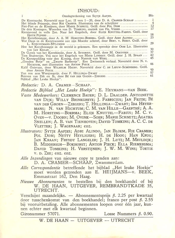 Géén frontispice meer, inhoud en advertentie Kerstboek 1936 |