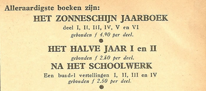 De complete vijfde Jaargang Zonneschijn is ook in twee deelbundels Na het Schoolwerk I en II verschenen. ![]() |