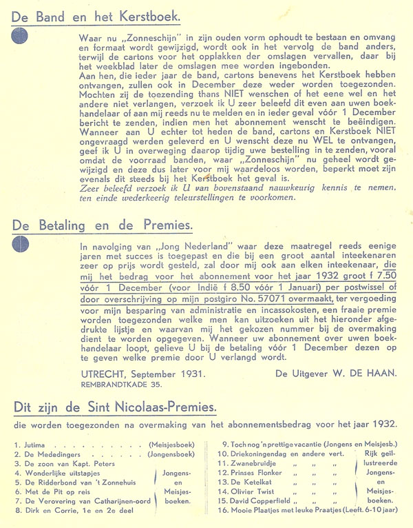 Ook: Kerstboek van Zonneschijn 1930 Behalve de gekartonneerde omslag identiek aan kerstnummer 1930 |