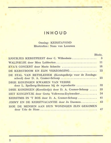 Kerstboek Zonneschijn 1940 Geniet, inhoud na titelpaginag, 48 pagina's |