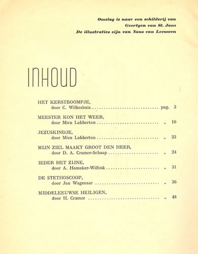 Géén frontispice meer, inhoud en advertentie Kerstboek 1938 |
