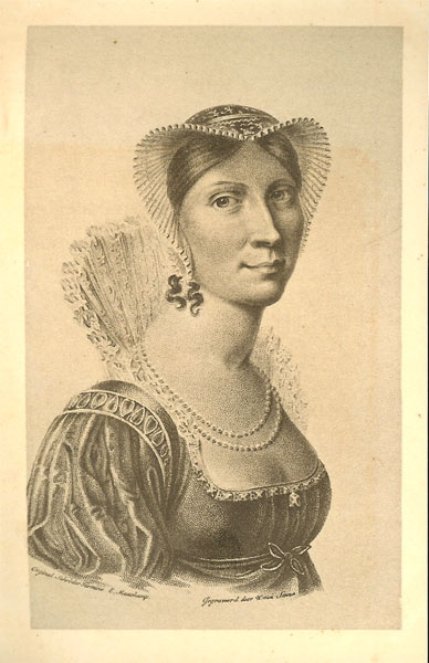 Vervolgens ziet men een vrijstaand gebouwtje met 18e eeuwschen gevel. Inwendig bestaat het uit een zaaltje dat in den zuiversten stijl van het Keizerrijk is uitgevoerd, met kunstig stucadoorwerk, een fraaien schoorsteenmantel en behang van fraise zijde. Het is bestemd voor de periodieke tentoonstellingen, waarvan de eerste gedurende de maand Mei, bestaat uit een uitgelezen collectie prenten, graveerwerk door vrouwen vervaardigd of vrouwenportretten, alles uit den aanvang der 19e eeuw. Deze verzameling is bijeengebracht en ingericht door den heer Bernard Houthakker. Dit bijzonder mooie zaaltje is op den dag van ds opening ook bestemd voor een receptie dooide historische commissie, waarvan het bestuur wordt gevormd door de dames: mevr. J. Overvoorde—Gordon, presidente; mej. M. Nieuwenhuyzen Kruseman, viee-presidente; dr. Annie Posthumus, secretaresse; mej. E. M. Rogge, archivaris; mevr. de Jong van Beek en Donk—Kluyver, penningmeesteresse.